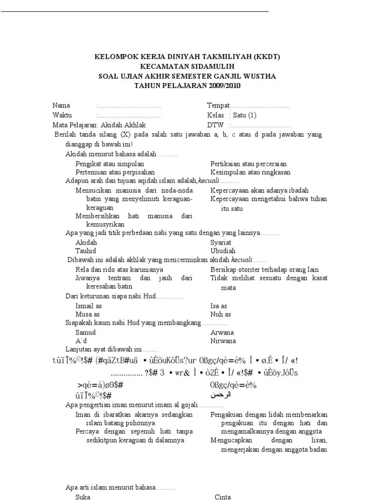 Kumpulan soal dan jawaban akidah akhlak kelas 12.